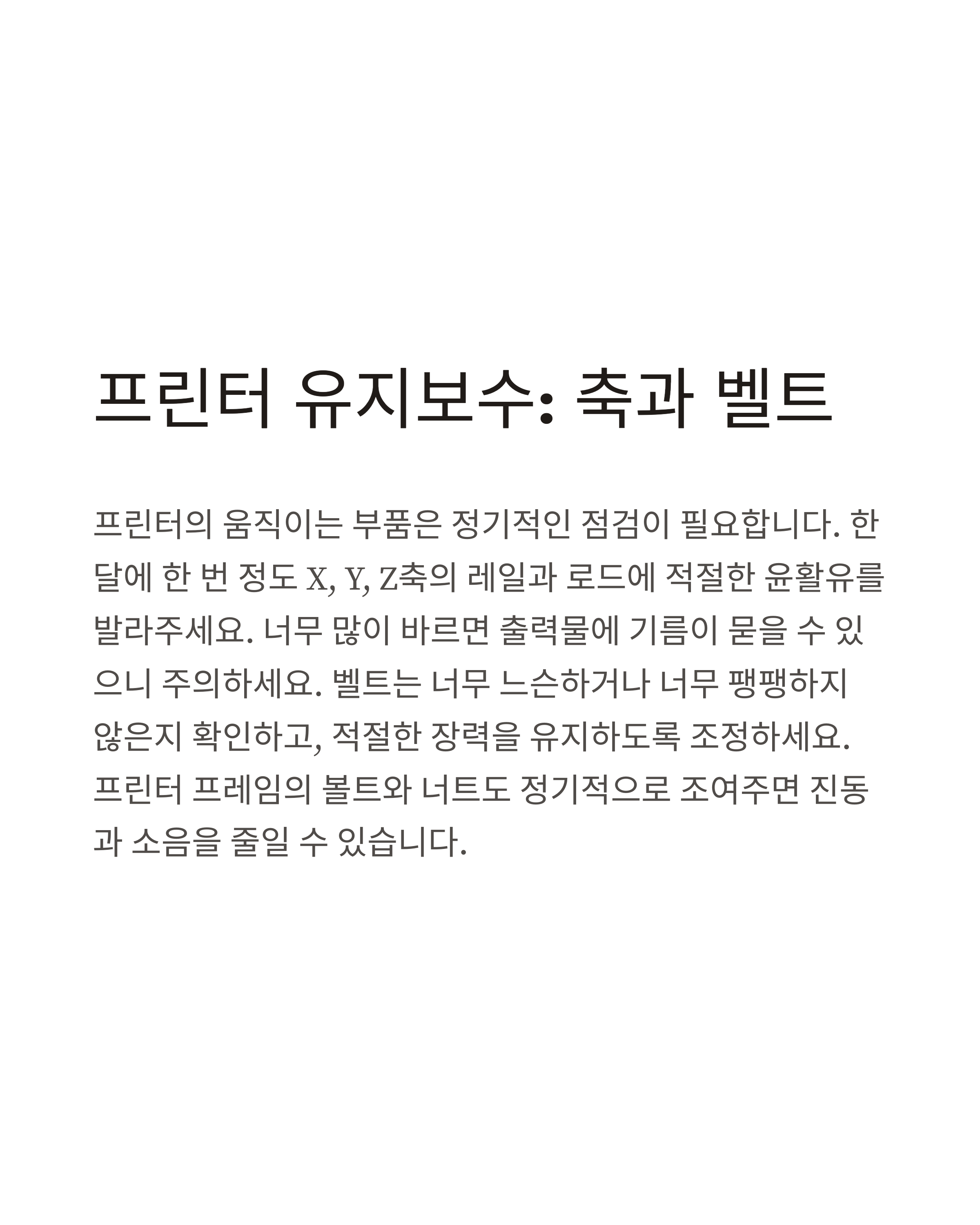 프린터 유지보수: 축과 벨트