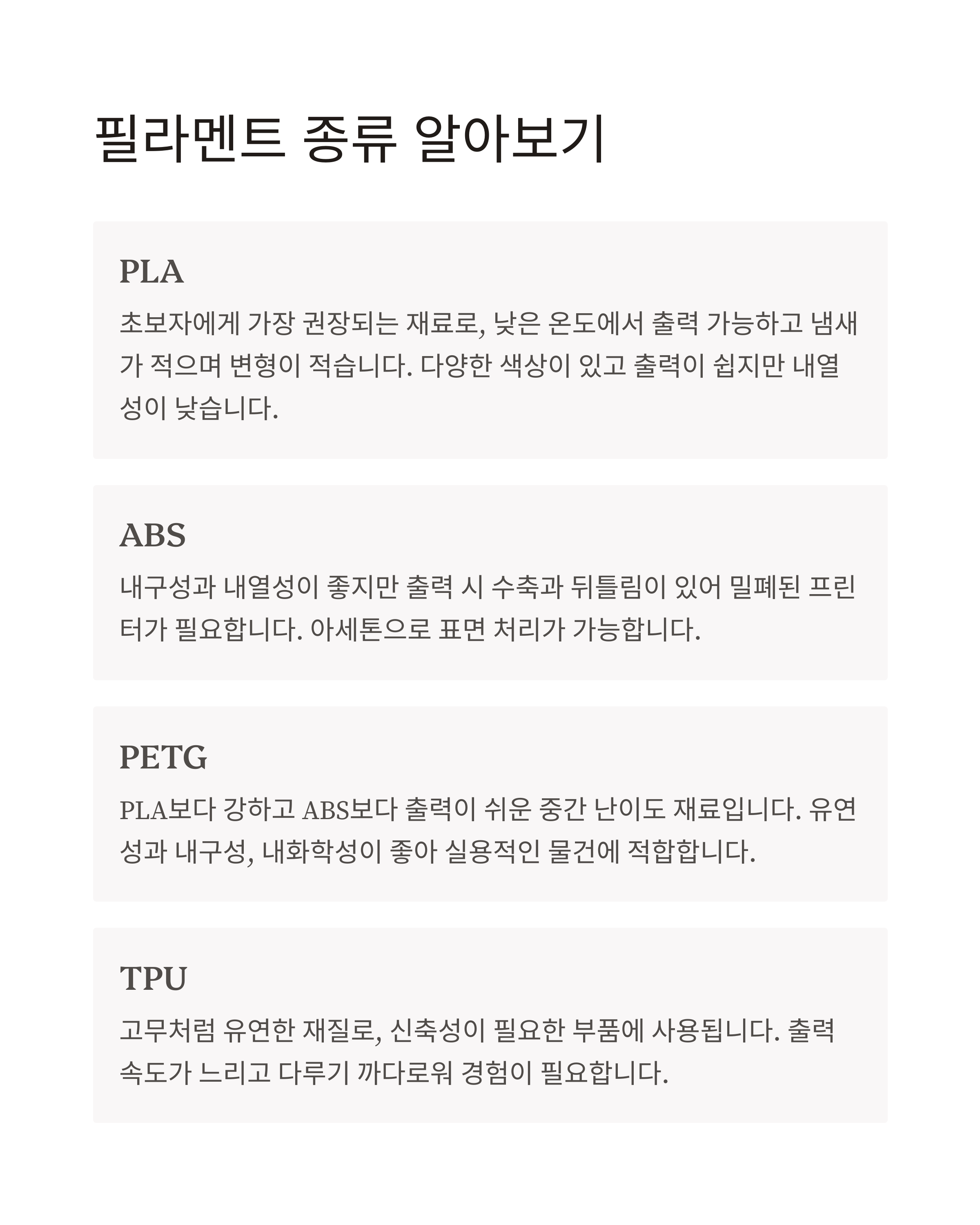 필라멘트 종류 알아보기