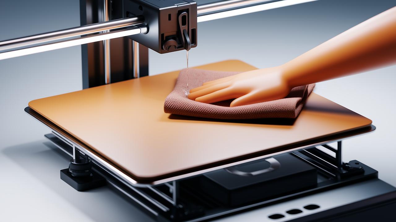출력 베드를 알콜이나 세정제로 깨끗이 닦아 기름기와 먼지를 제거합니다. 깨끗한 베드는 접착력을 높여줍니다.