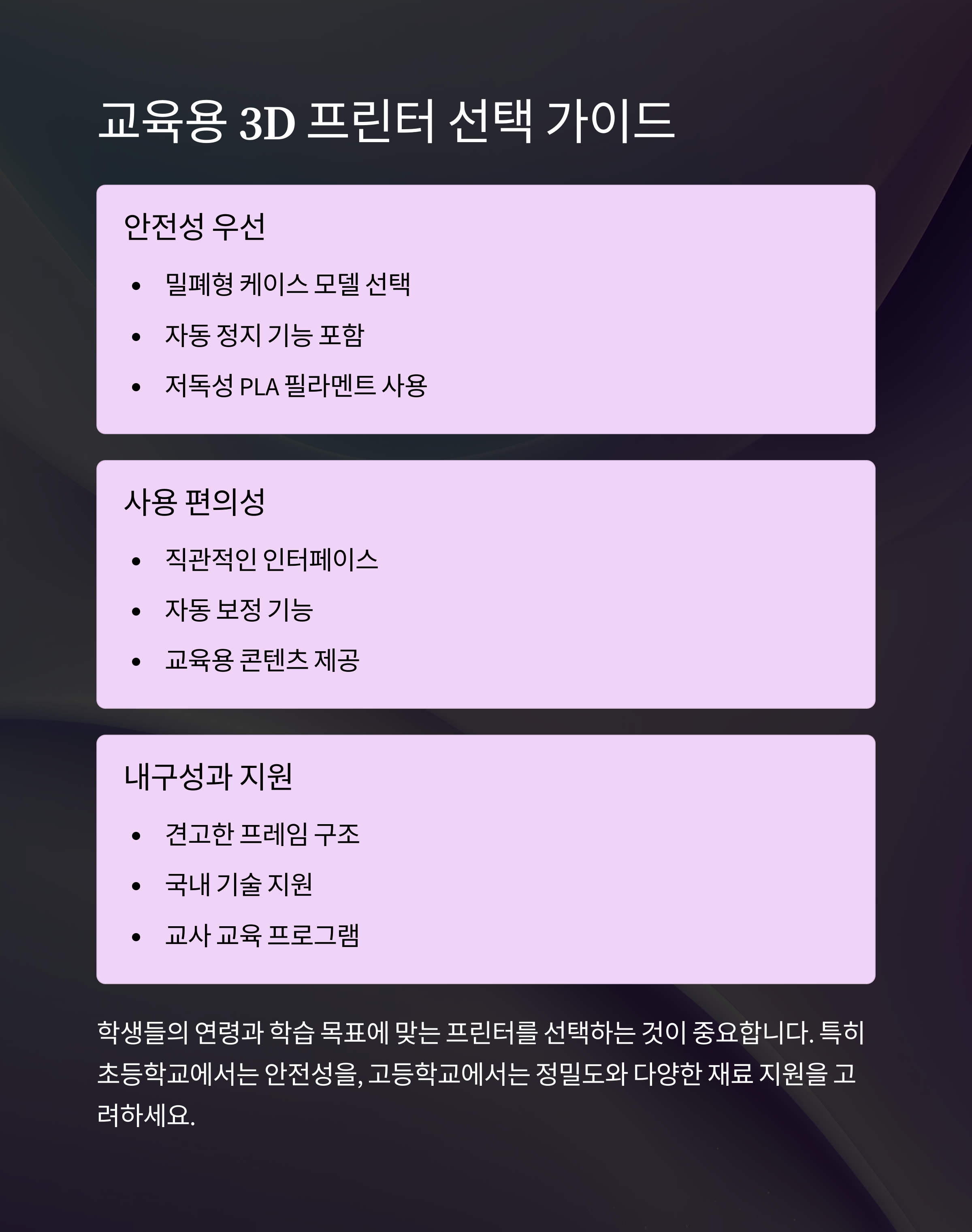 교육용 3D 프린터 선택 가이드