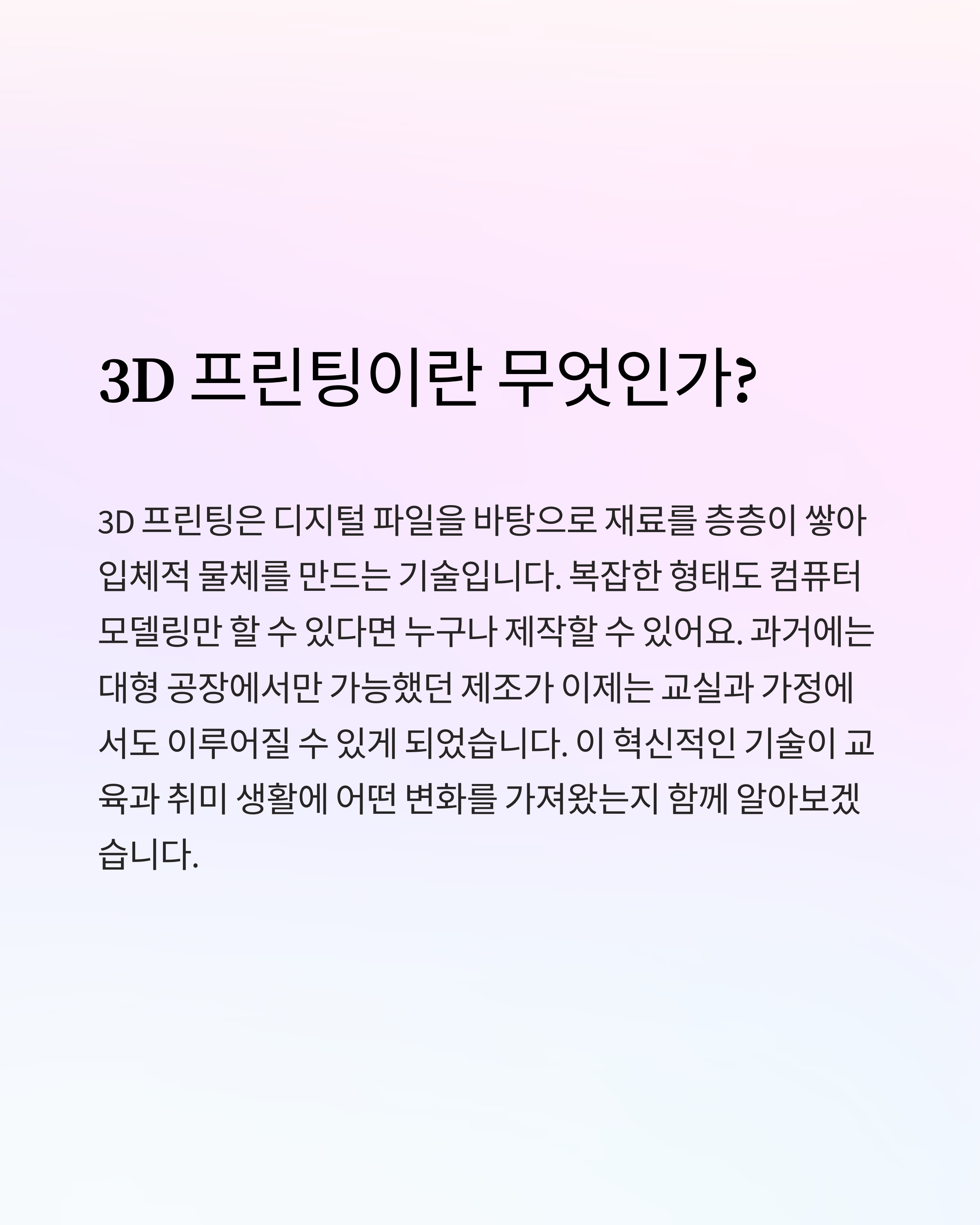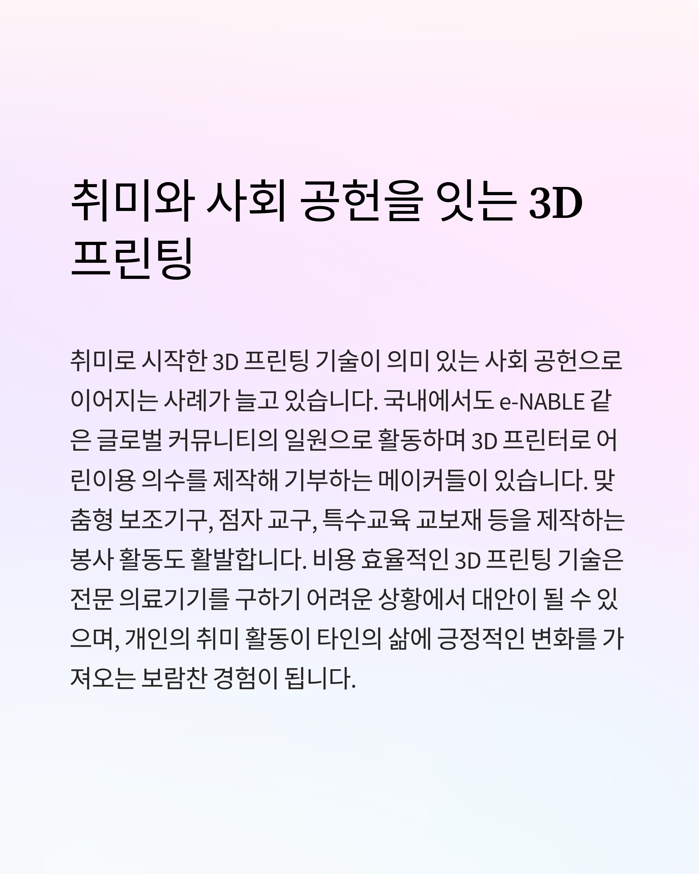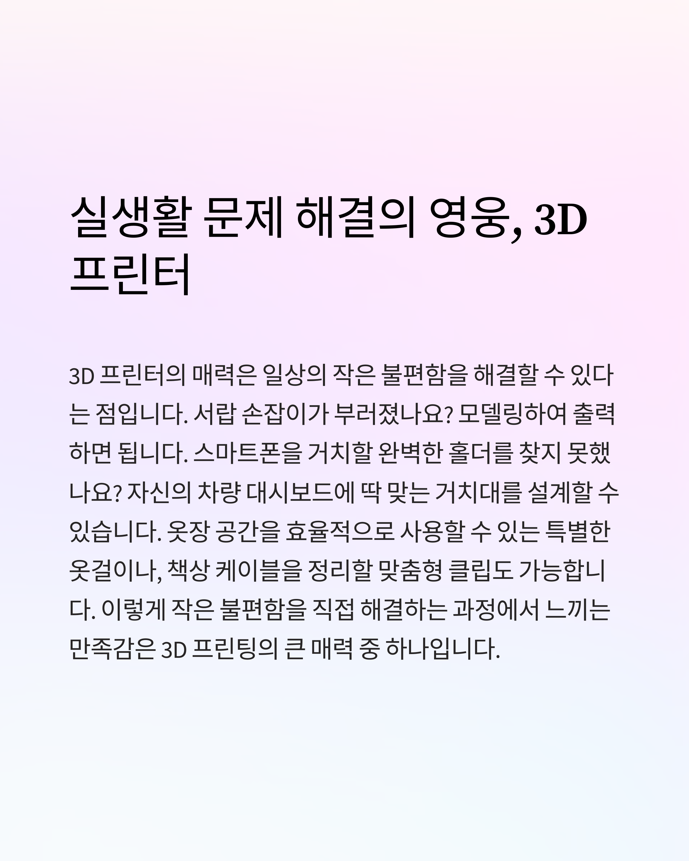 3D 프린팅으로 당신의 창의력을 펼쳐보세요!