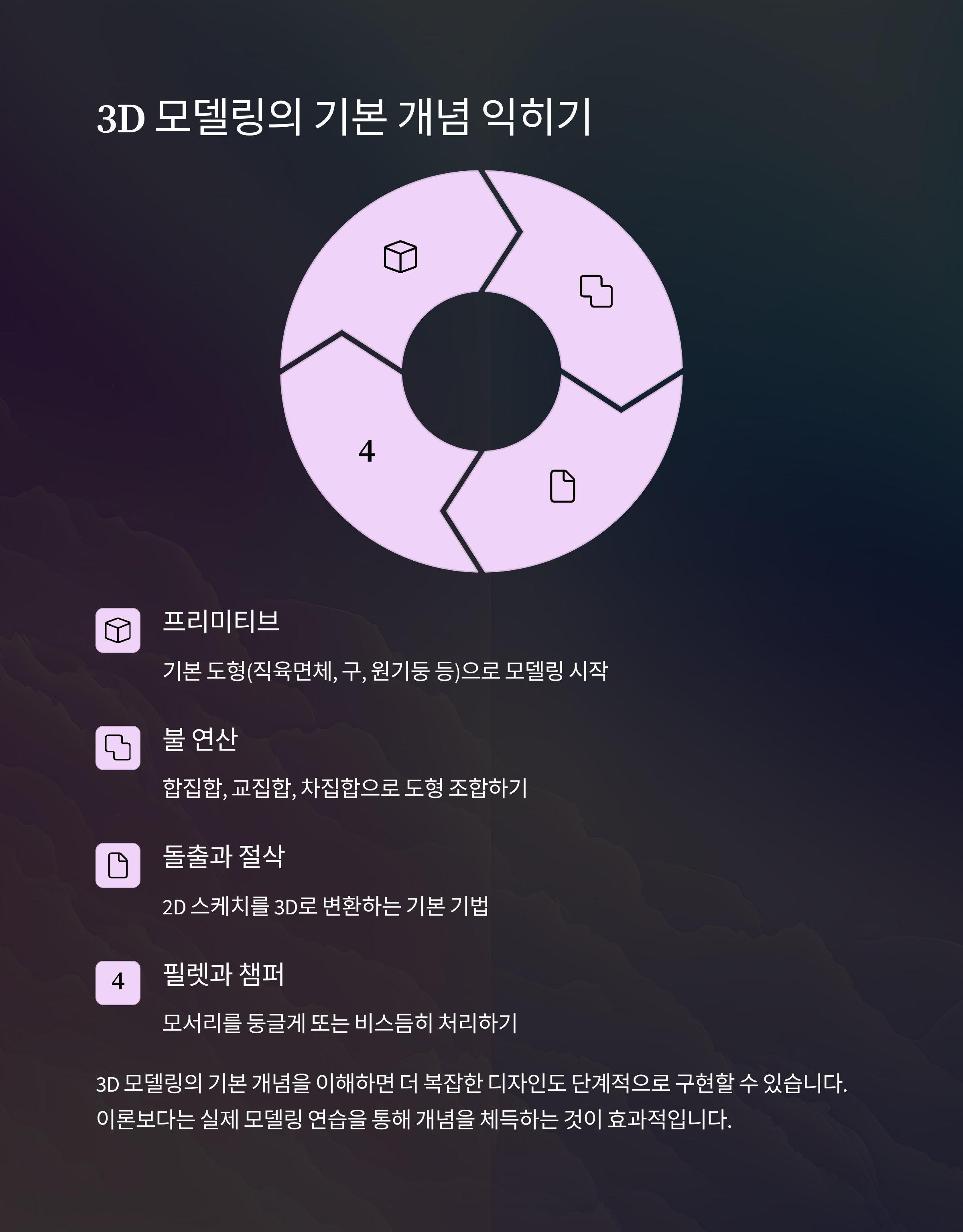 간단한 3D 모델링 도구를 활용해 기본 도형을 만들고 수정하는 방법을 배웁니다. 처음부터 복잡한 디자인보다는 단순한 형태부터 시작하는 것이 중요합니다.