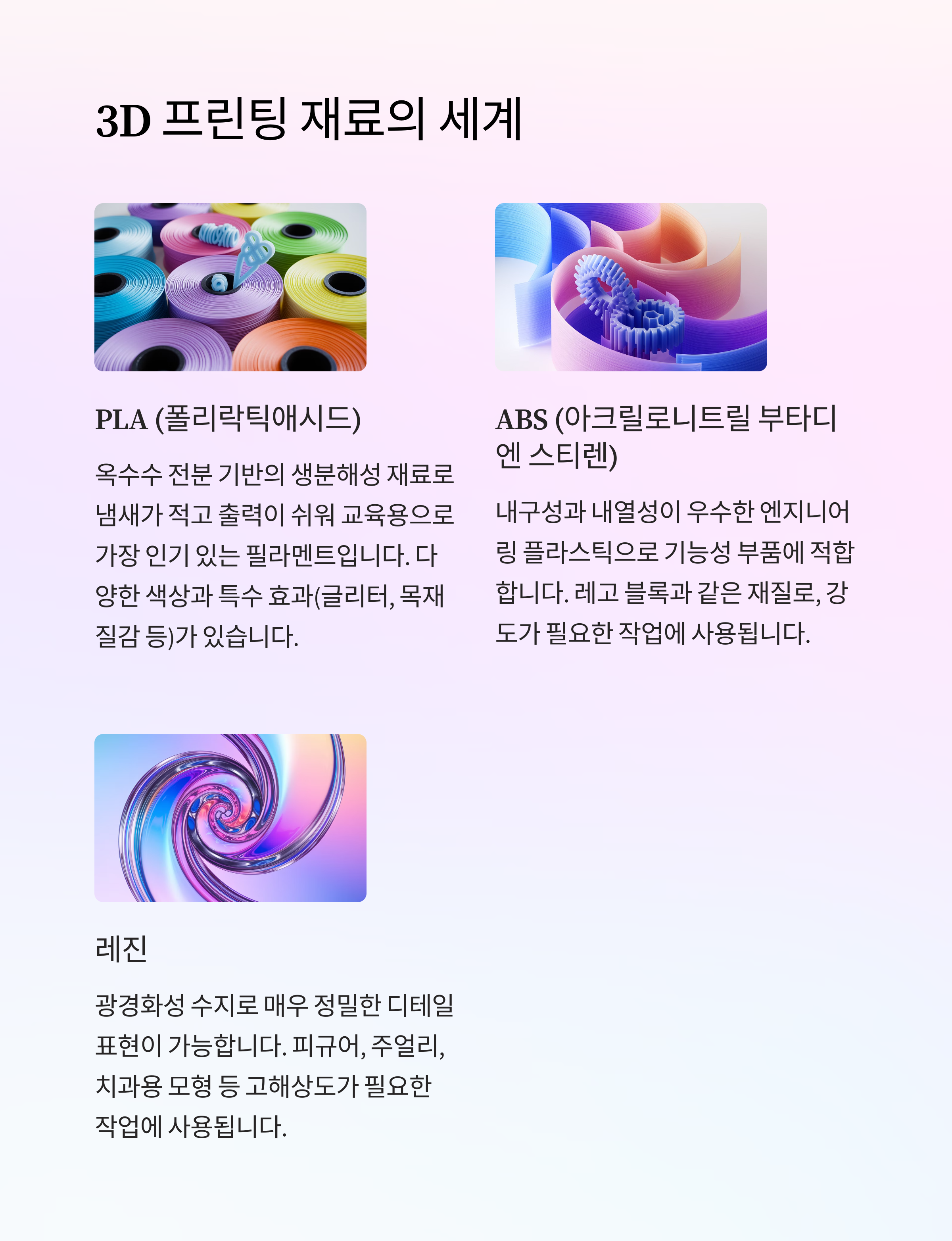 3D 프린팅 재료의 세계