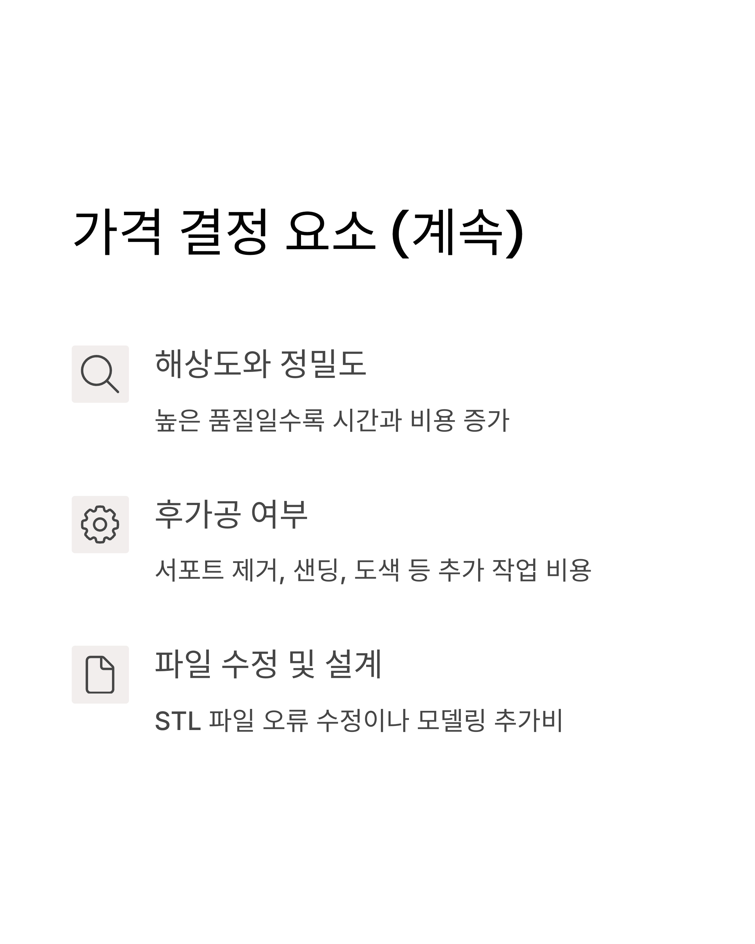 요약: 3D프린트 대행 가격 결정 요소