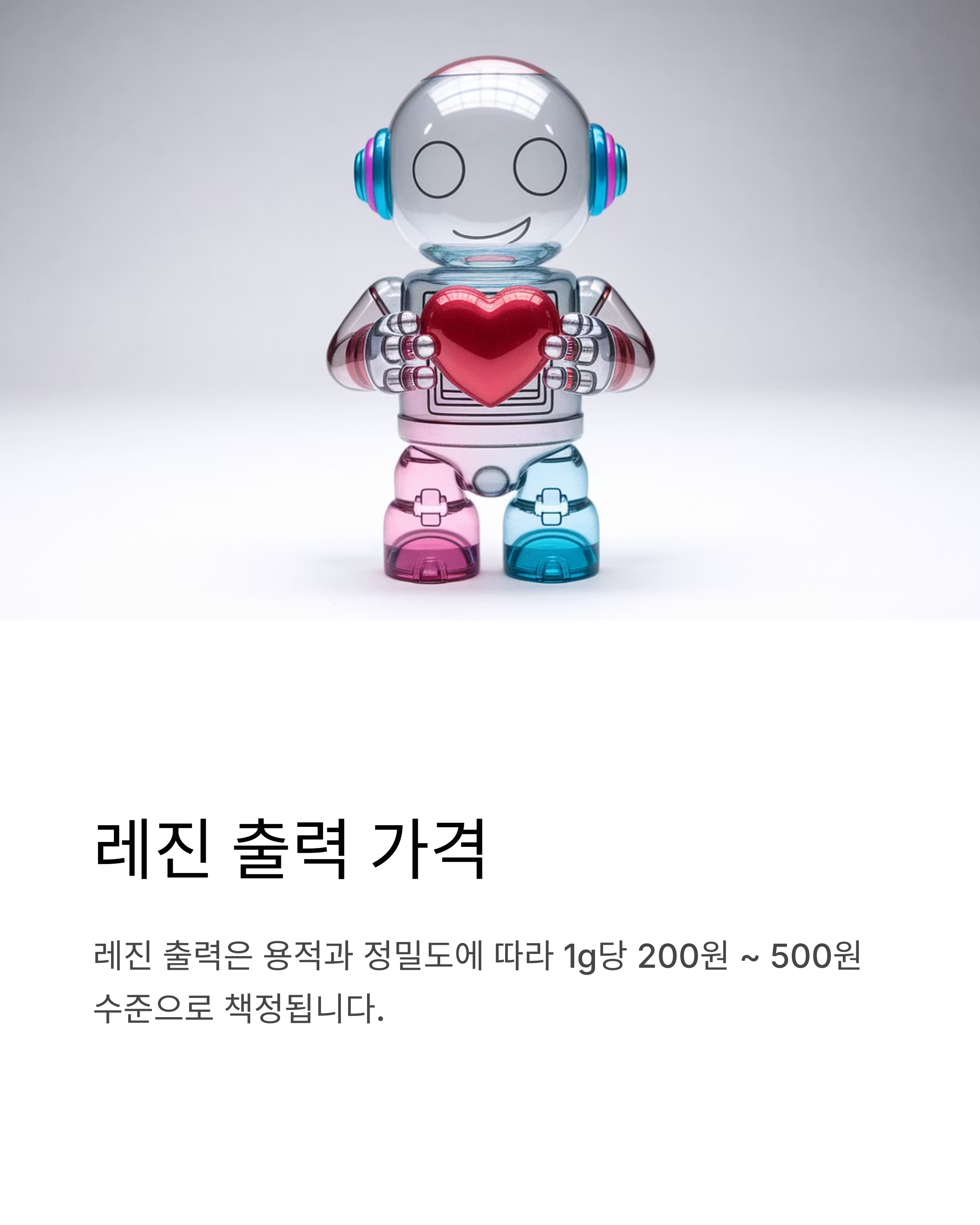레진 출력은 용적과 정밀도에 따라 1g당 200원 ~ 500원 수준으로 책정됩니다.
