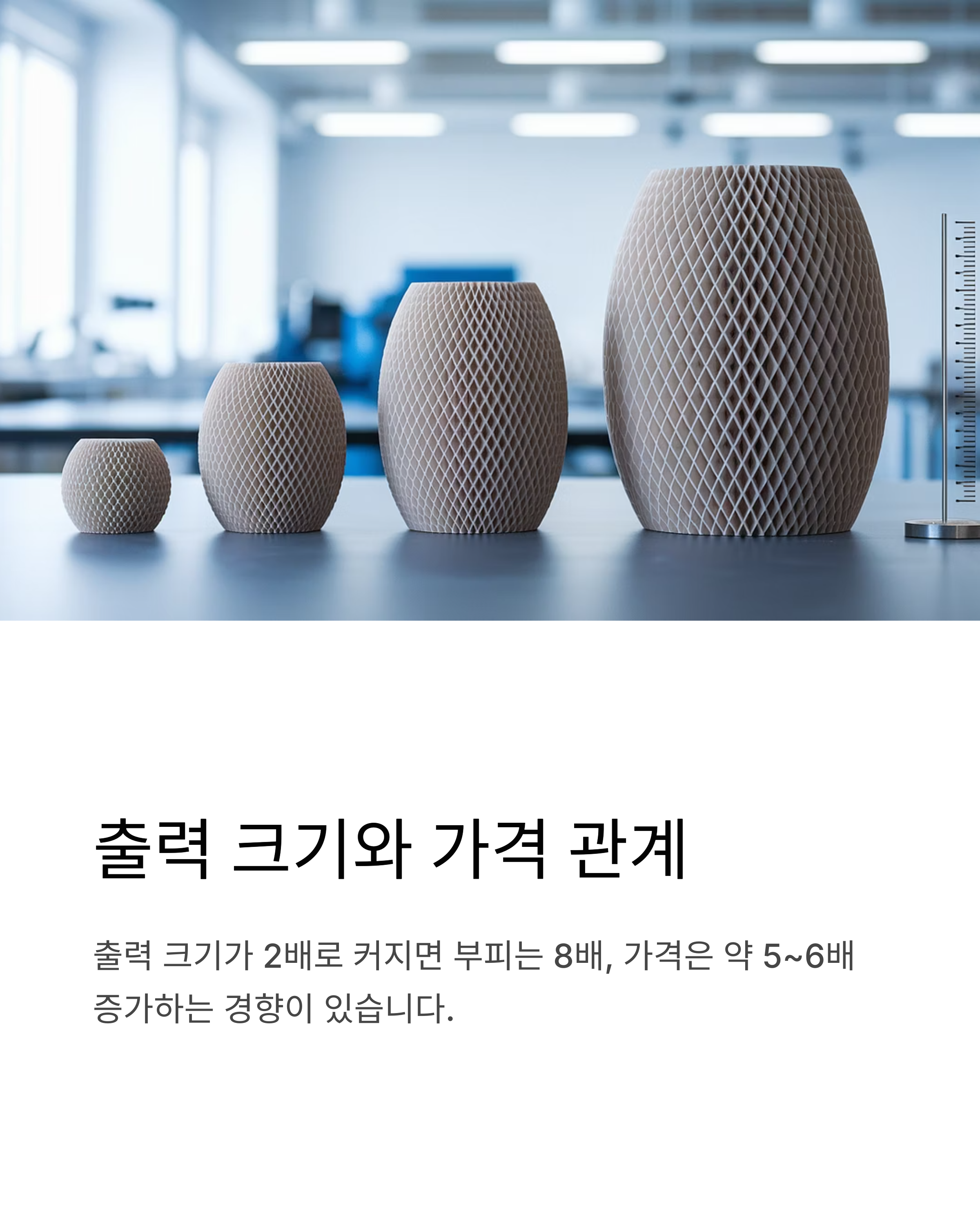 출력물이 클수록 재료가 많이 사용되어 비용 증가