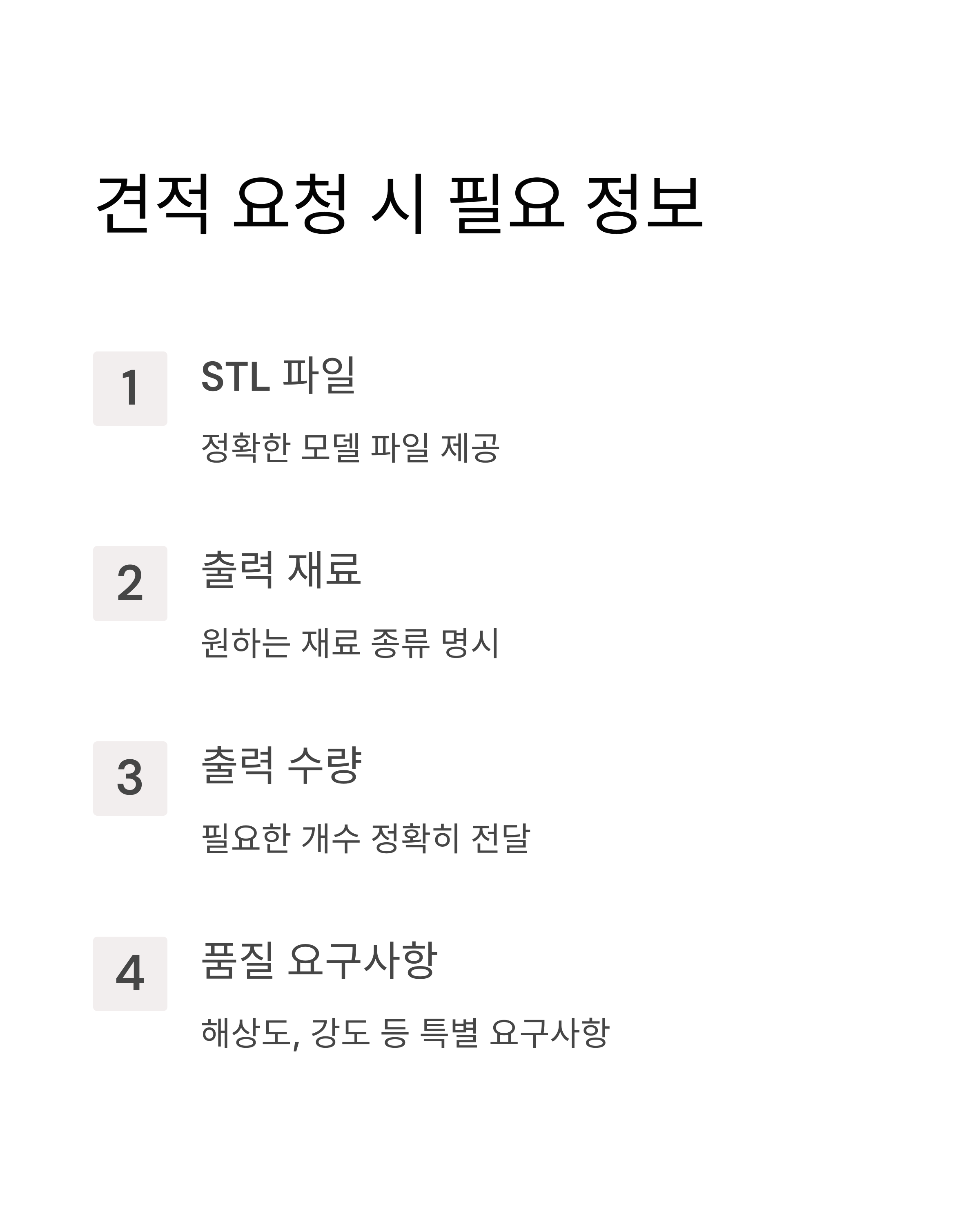 대부분의 업체는 STL, OBJ 파일 형식을 지원합니다.