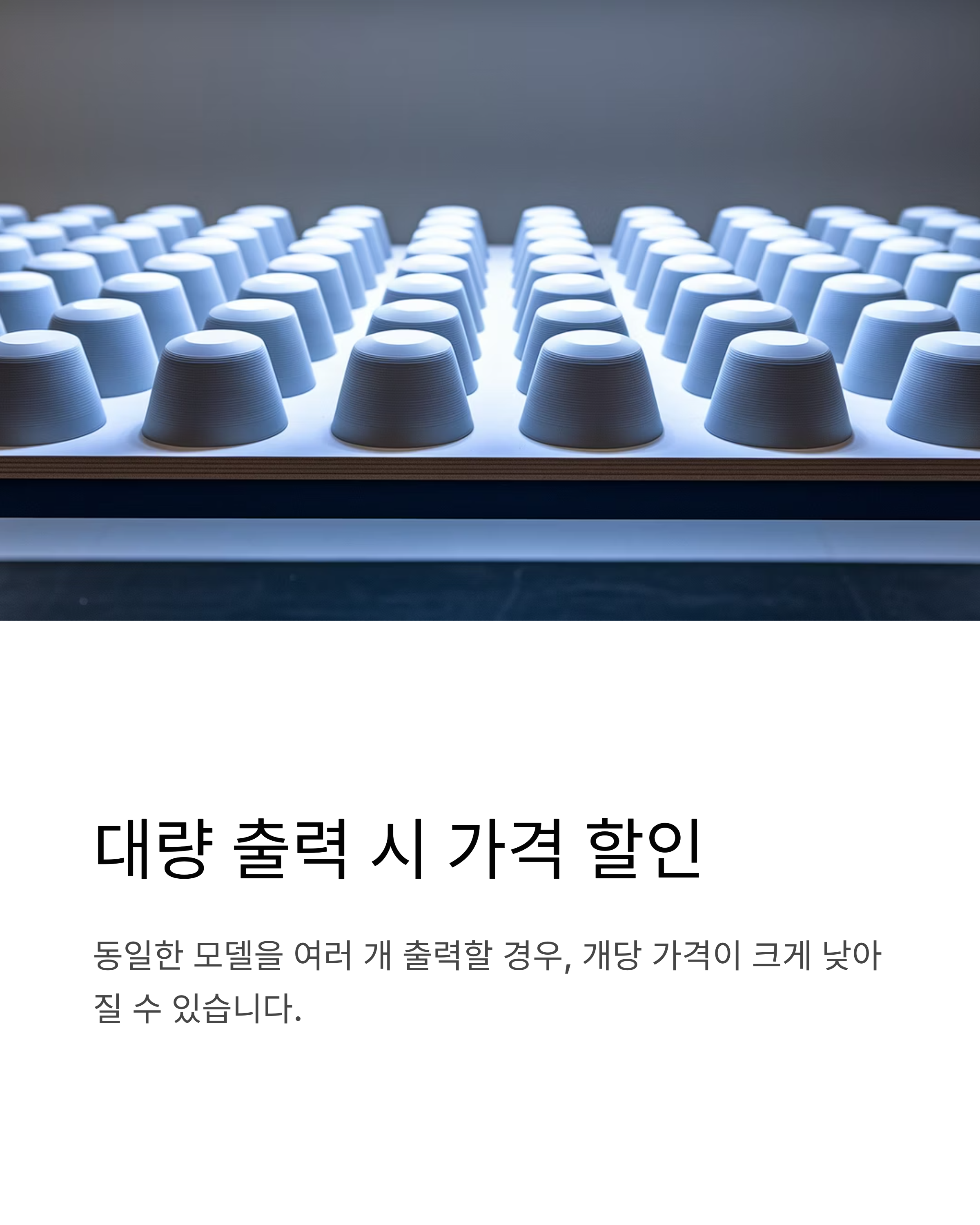 여러 부품을 한꺼번에 출력하면 단가가 줄어듦