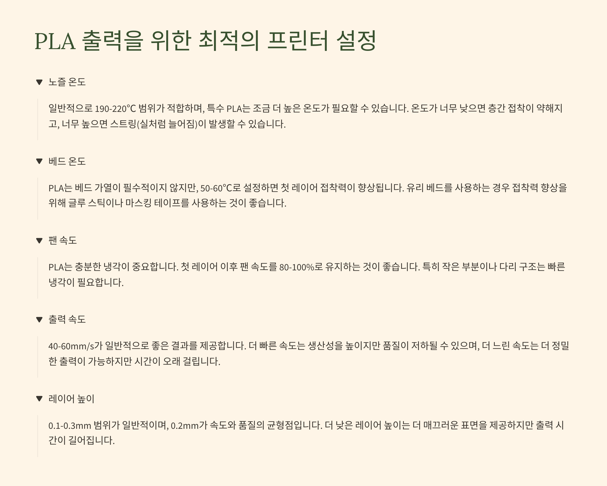 PLA 출력 문제 해결 가이드