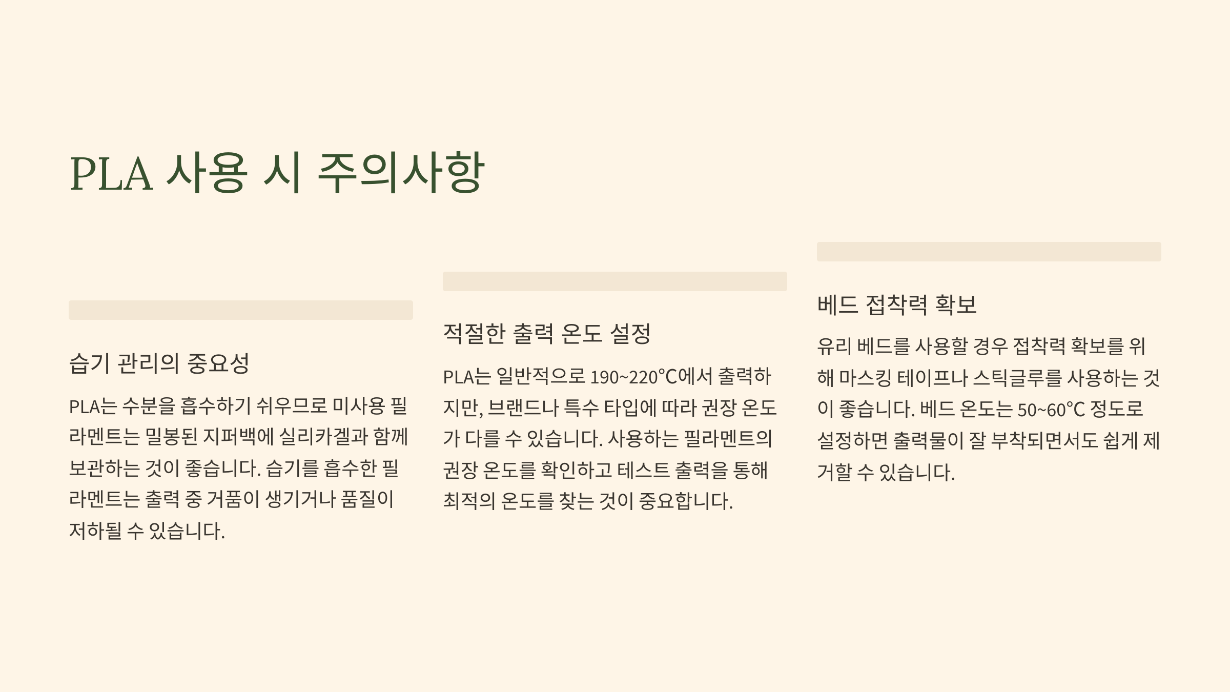 PLA 사용 시 주의사항