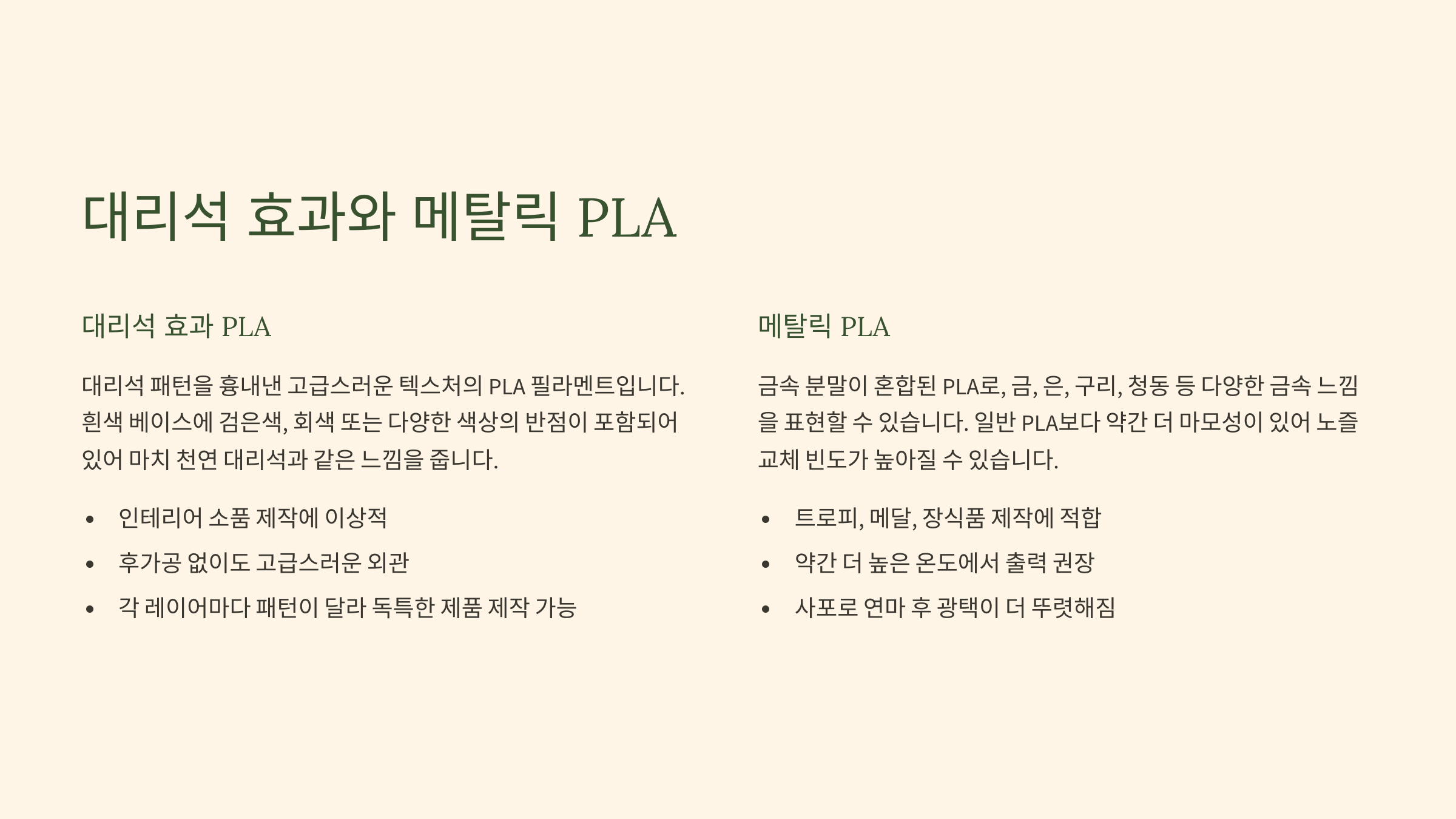 대리석 효과와 메탈릭 PLA