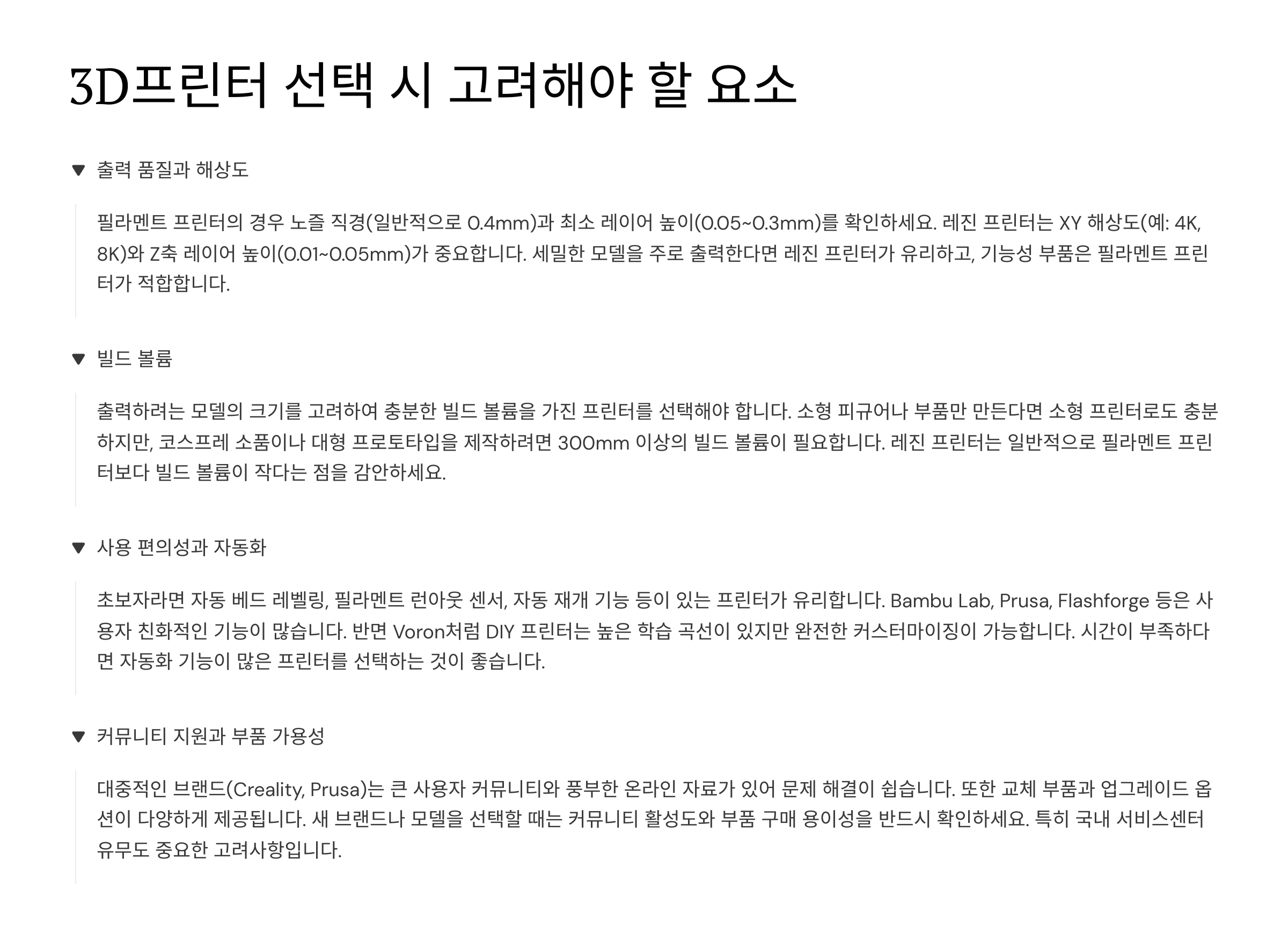 취미용, 교육용, 프로토타입 제작, 피규어 제작 등 주 용도를 명확히 하세요.